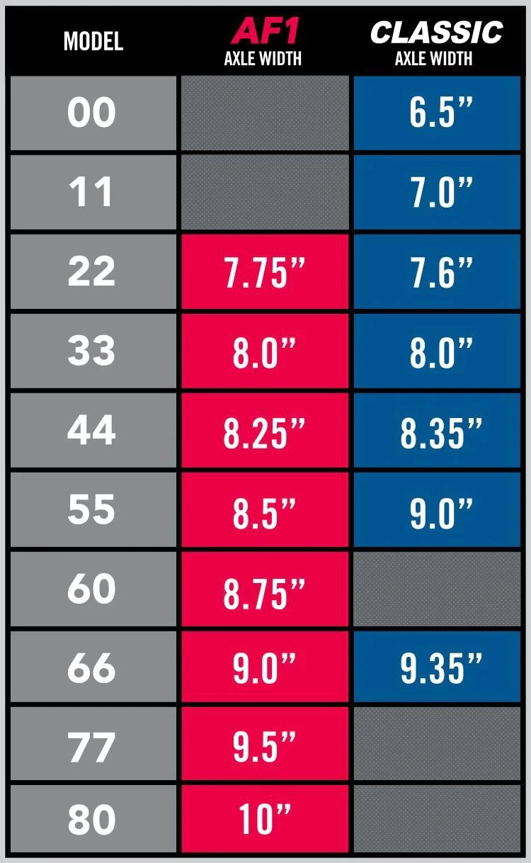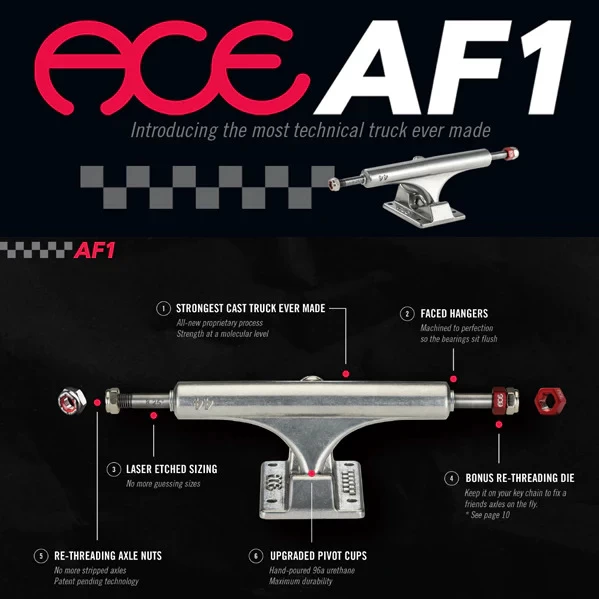 Struggling with unresponsiveness on Indy’s 215? For those after a 10″ axle with Ace’s trademark high response turning, you’re in luck with the all new AF1 80! The AF1 is carefully manufactured using Ace’s proprietary casting process. Years in development, the ACE AF1 has a 70% increase in the aluminium’s structural integrity, making it the strongest cast truck on the market.