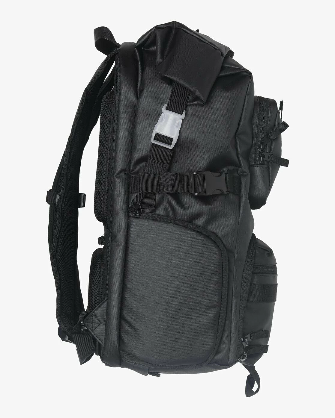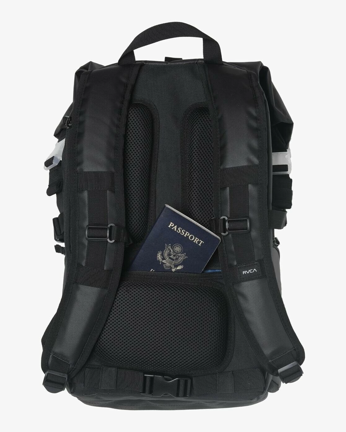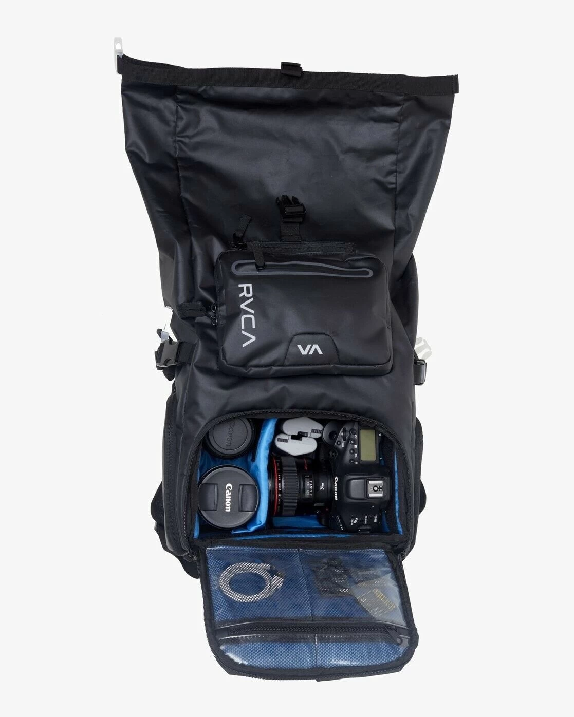 RVCA Backpack Zak Noyle Camera Bag III Black Zak Noyle is back with a new signature camera backpack. its features include a roll-top entry, exterior laptop sleeve, and a side water bottle pocket designed to also hold a tripod. additional storage features include a fleece-lined eyeglass holder, an interior organizer with a removable divider, a passport compartment, and a camera compartment that can be removed to convert the bag into a daypack. built with water repellent textile, the 35 liter bag comes with a concealed rain cover for extra protection against the elements. for added support, the backpack features an abrasion resistant base, ergonomic shoulder straps, a mesh padded real panel, and an adjustable sternum strap. – Zak Noyle Signature Camera Backpack – Water Repellent Textile – Exterior Laptop Sleeve – Roll Top Entry – Fleece Lined Eyeglass Holder – Adjustable Sternum Strap – Interior Organizer – Mesh Padded Rear Panel – Ergonomic Shoulder Straps – Abrasion Resistant Base – Passport Compartment – Side Water Bottle Pocket designed also hold tripod – Concealed Rain Cover – Removable Camera Compartment – Removable Interior Divider – Converts to daypack when removing camera compartment – 35 L