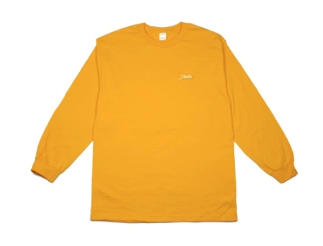 STUDIO Small Script Embroidered Logo Tee GOLD | long sleeve t-shirt