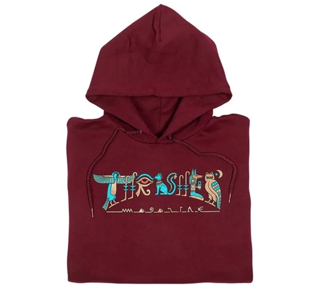 Thrasher Hieroglyphic pullover hooded sweatshirt maroon.