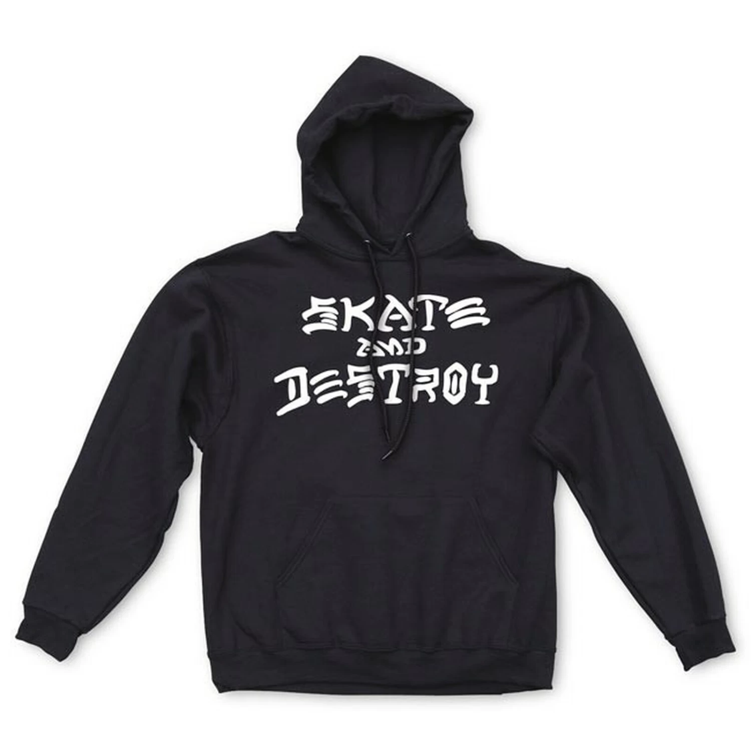 THRASHER SKATEBOARD MAGAZINE Flame Logo Hood Jumper BLACK BLACK | Hoodie Pullover